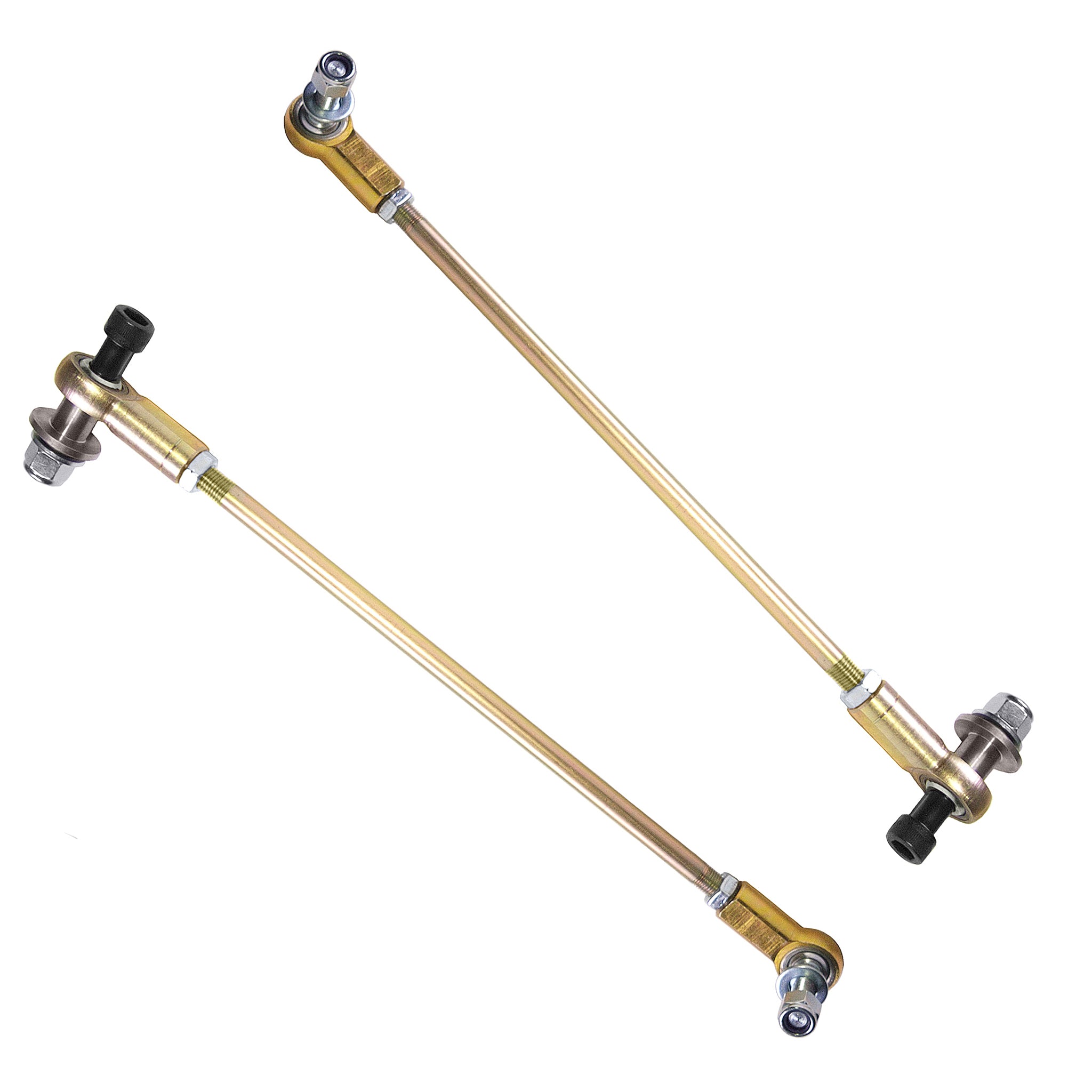 Our sway bar links feature one-piece precision CNC'd stainless steel seat adapters for proper fitment. Unlike other end links, these adjustable front sway bar links utilize plated, rust resistant threaded rods with high-quality, USA-made Teflon-lined race-spec rod ends and come complete with all necessary mounting hardware for an easy installation. Set of two.